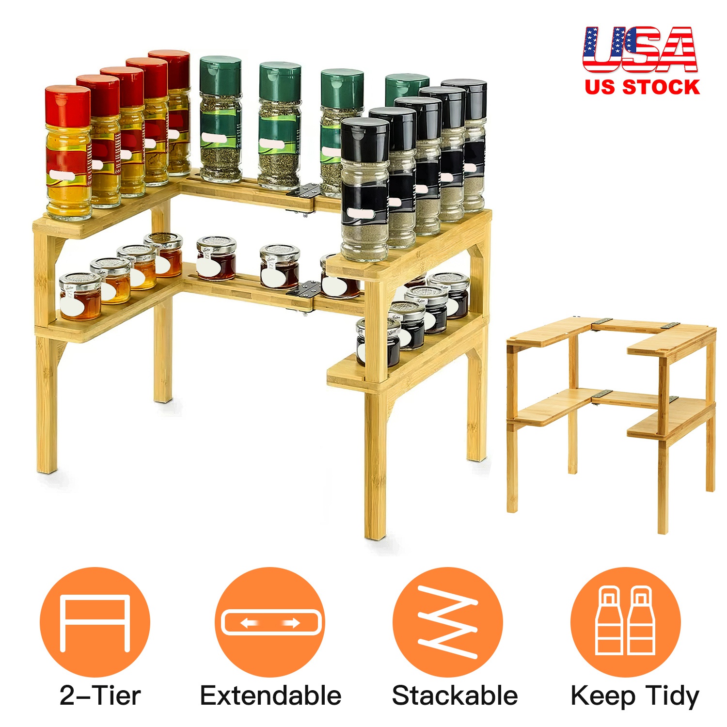 Home > 2-Tier Kitchen Spice Rack Expandable Bamboo Spice Organizer Cabinet Stackable Seasoning Organizer Extendable Spice Jar Rack for Countertops Pantries C