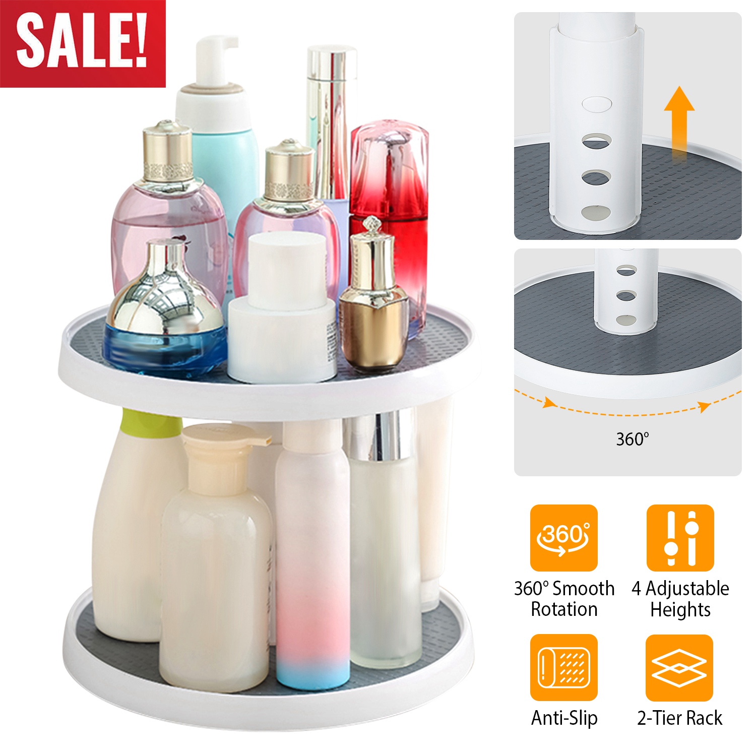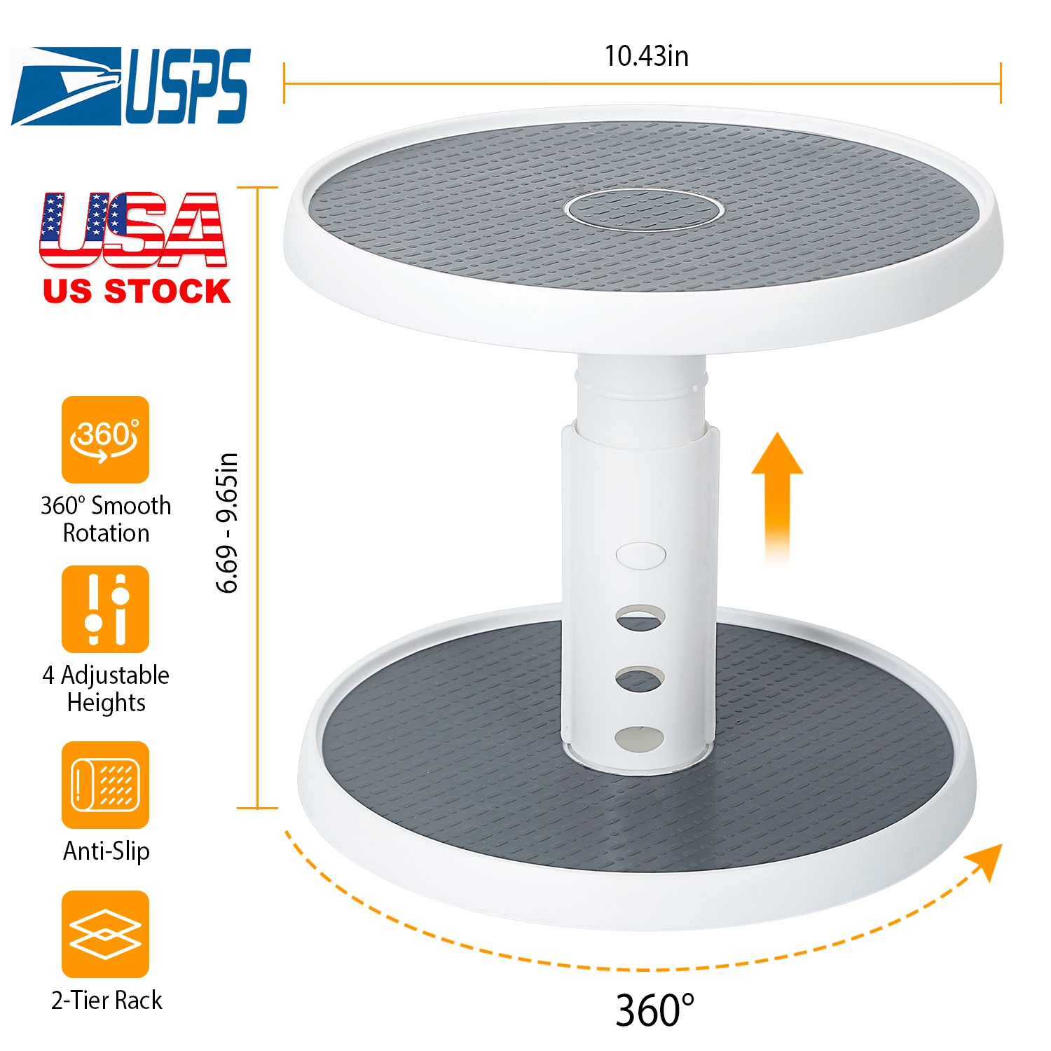 Home > 2 Tier Lazy Susan 360° Turntable Non Skid Kitchen Spice Rack Organizer 10 Inch Height Adjustable Storage Rack For Cabinet Counter Bathroom Pantry