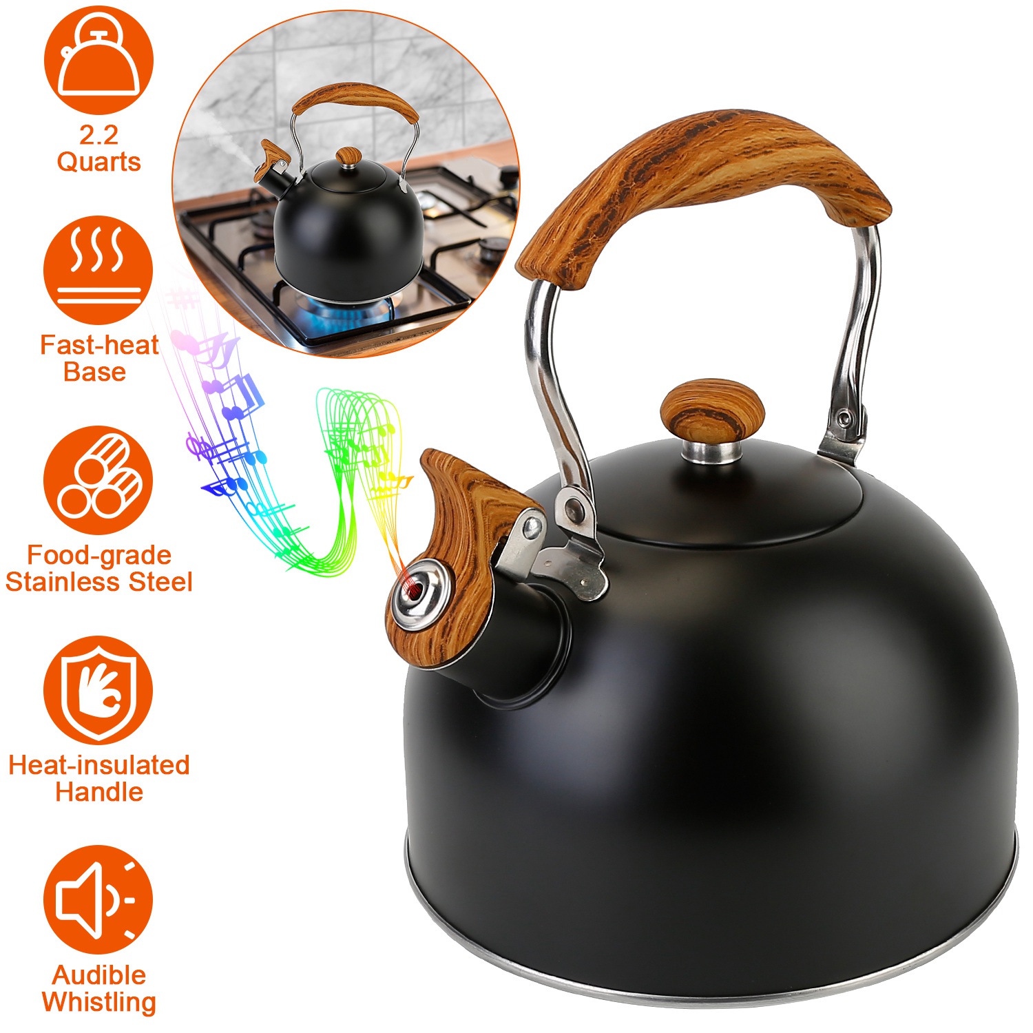 2.2Quarts Stainless Steel Tea Coffee Milk Kettle Stovetop Kettle Loud Whistling Teapot w/ Nylon Handle