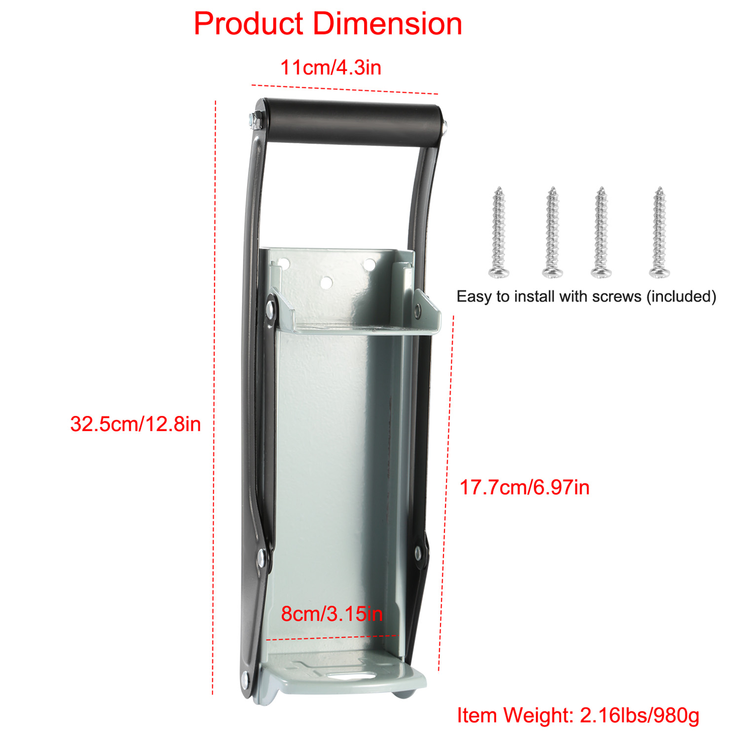 Our can crusher adopts heavy-duty steel materials, owning sturdy construction and easy-grip pull handle to crush metal can effortlessly, making the recycling fast and easy. The can crusher can crush large can up to 16oz/500ml and transform it to 20% of its original size, saving 80% space in the garage or recycling bin. Come with a bottle opener for opening beer cap easily. Moreover, we provide you 4 included screws to mount can crusher on wall vertically, making the crushing tasks easily and safely.