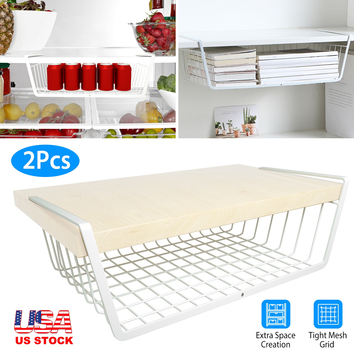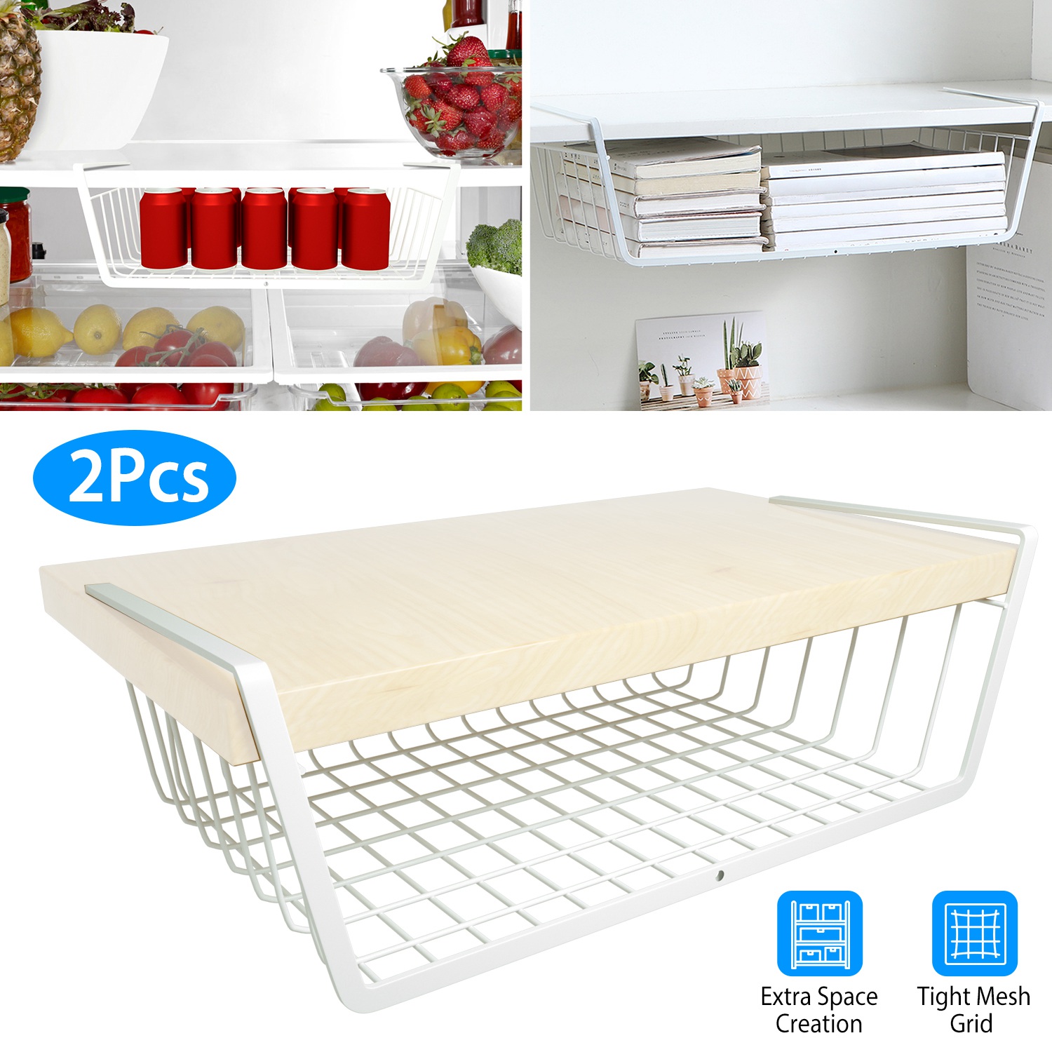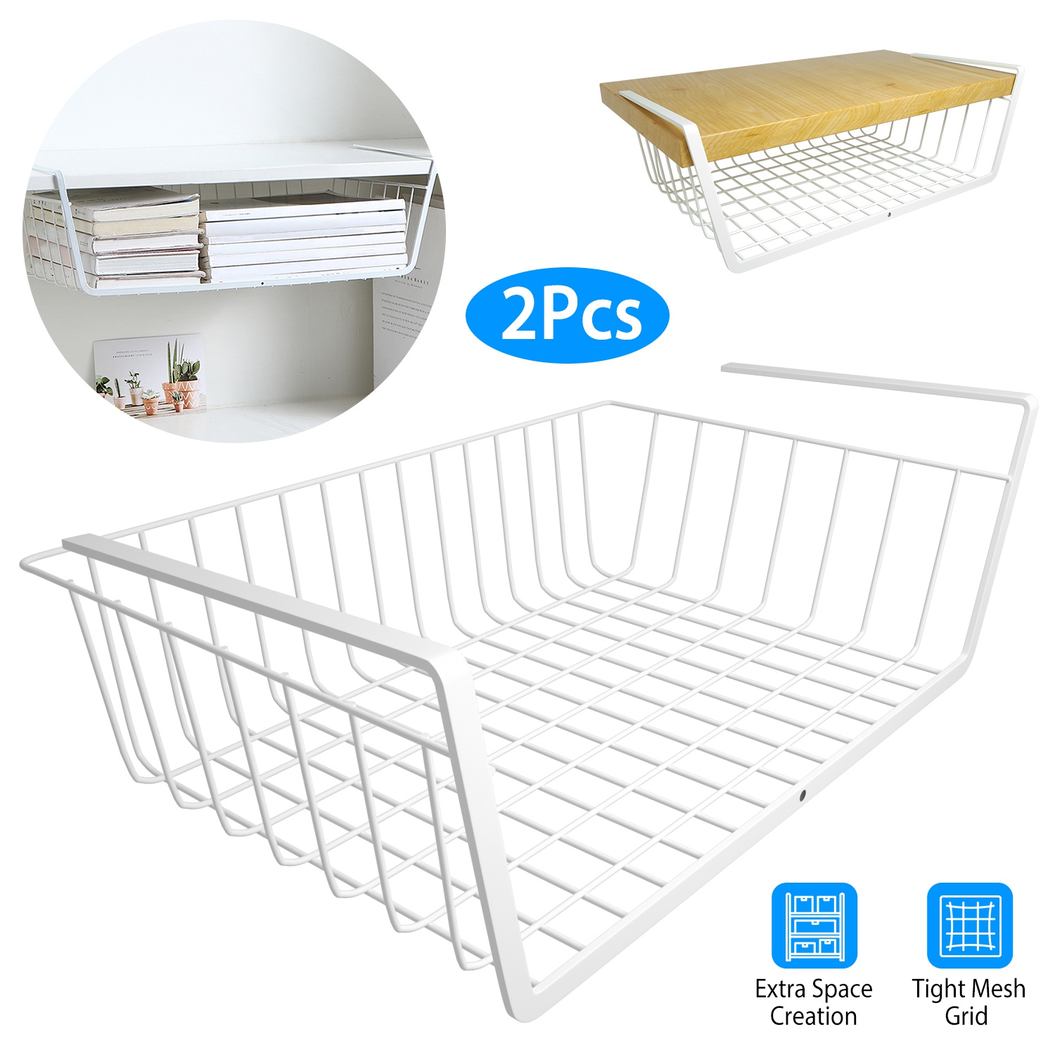 Home > 2Pcs Hanging Under Shelf Storage Basket Vertical Wire Storage Rack Kitchen Cabinet Organizer For Food Storage Dish Towel Kitchen Pantry