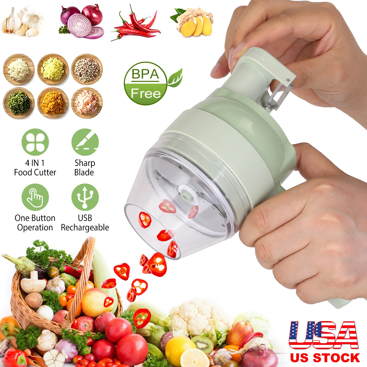 4 in 1 Handheld Electric Vegetable Cutter Mini Food Fruit Chopper Grinder Slicer Dicer Garlic Meat Ginger Mud Masher Rechargeable Food Processor