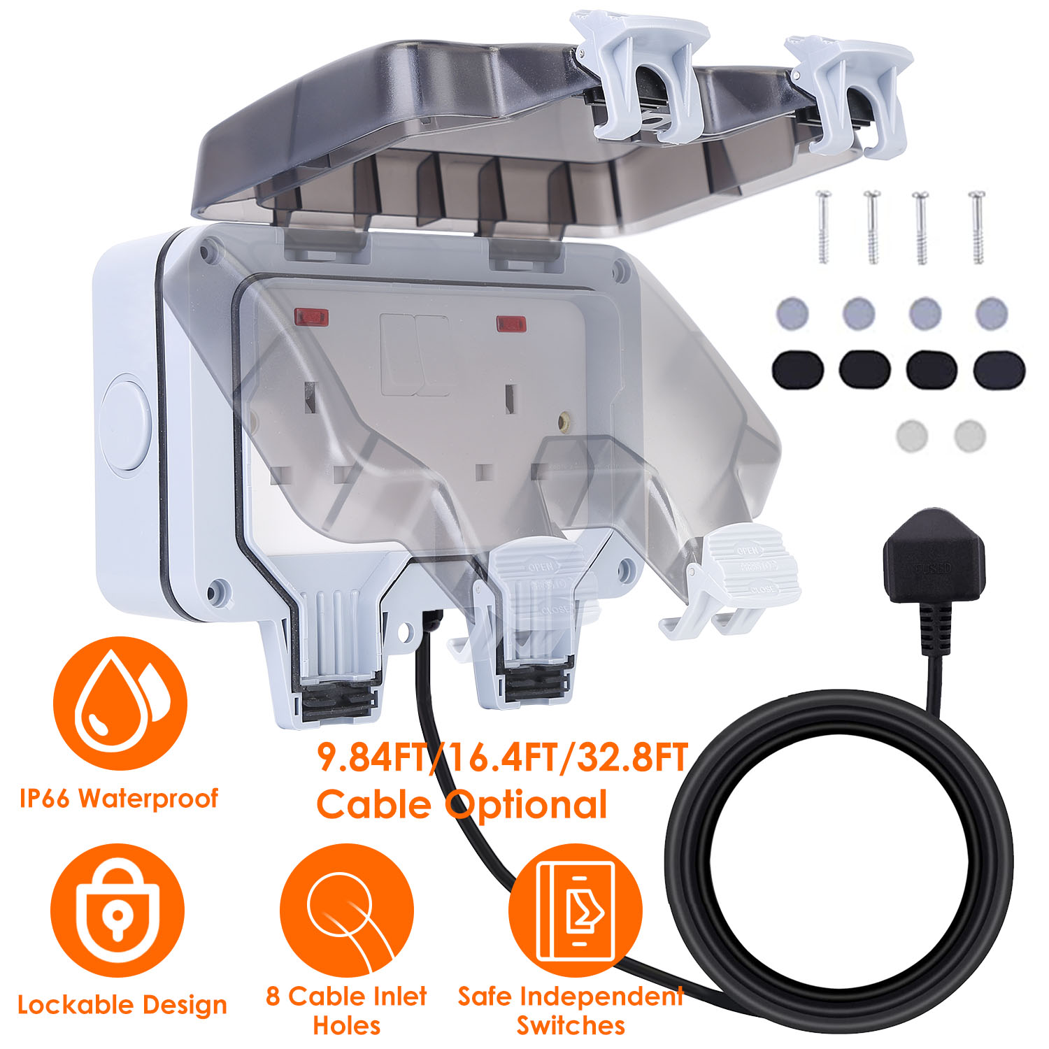 Double Outdoor Socket IP66 Waterproof 13A 2 Gang UK Plug Twin Switched Double Socket Electrical Wall Outlet Socket Box w/ 32.8ft Extension Cable Double Outdoor Socket IP66 Waterproof 13A 2 Gang UK Plug Twin Switched Double Socket Electrical Wall Outlet Socket Box w/ 32.8ft Extension Cable Double Outdoor Socket IP66 Waterproof 13A 2 Gang UK Plug Twin Switched Double Socket Electrical Wall Outlet Socket Box w/ 32.8ft Extension Cable Double Outdoor Socket IP66 Waterproof 13A 2 Gang UK Plug Twin Switched Double Socket Electrical Wall Outlet Socket Box w/ 32.8ft Extension Cable Double Outdoor Socket IP66 Waterproof 13A 2 Gang UK Plug Twin Switched Double Socket Electrical Wall Outlet Socket Box w/ 32.8ft Extension Cable