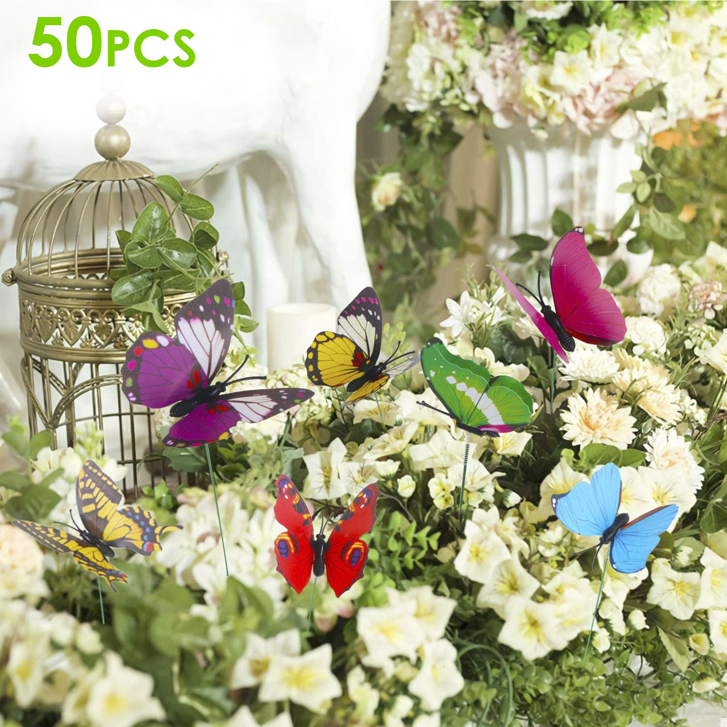 Do you like to bring life to your home, add vigor to your space and make your house or garden modern and beautiful? The wings of our 50Pcs butterfly stake can flap as the breeze blows, which creating the illusion of real butterflies. Iron stakes can wrap on branches or just plug into the soil. A great choice for adding our butterfly to flower vase, plant pot, your garden, basket, patio lawn, holiday or party decorations.