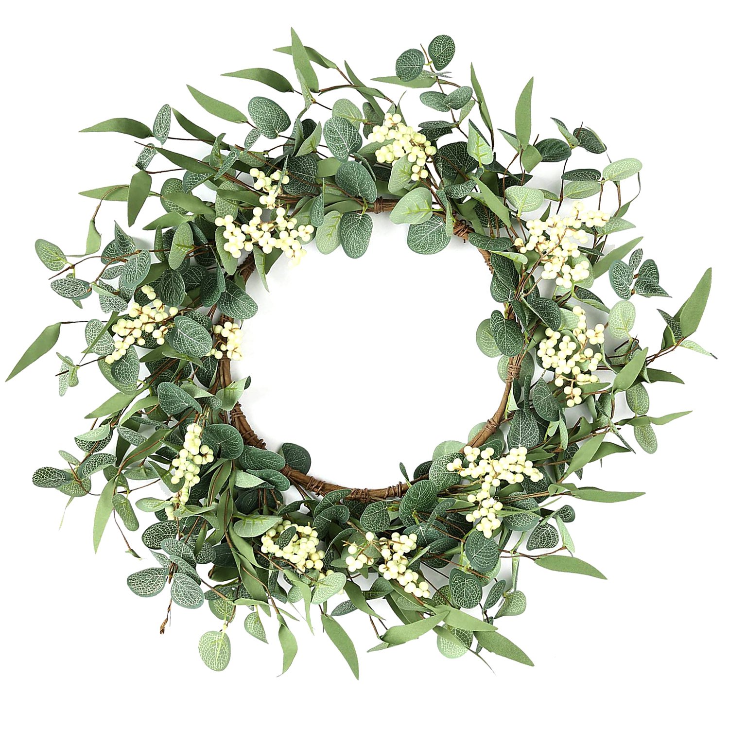 Home > 20in Artificial Eucalyptus Leaves Wreath with Berries Fake Green Wreath for Front Door Wall Window Decoration